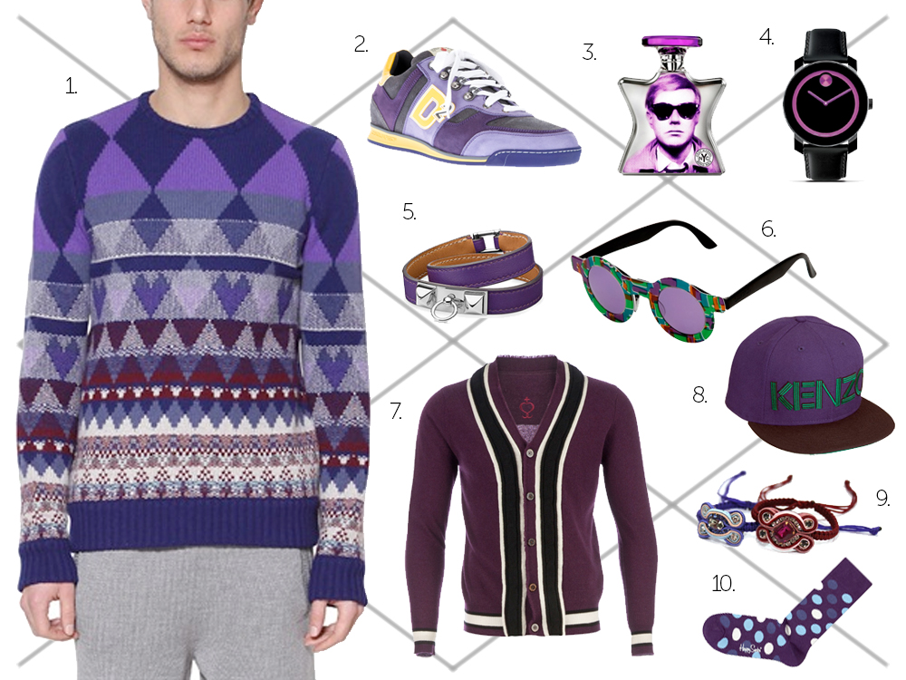 Sus infinitas tonalidades esconden lujo y pasión, Herve Leger, Missoni, Mary Katrantzou, Erdem, Roksanda Ilincic, Christopher Kane, Prada, Gucci y Roberto Cavalli, son algunos de los exponentes de este color trend llevándolo desde el intenso Mitten Purple hasta llegar al más lavado Plum Purple. En el caso de los hombres, el espectro de tonos se reduce a sólo cuatro tonalidades: Violeta, Mulberry, Velvet y Royal, pero los accent colors son mayores: negro, amarillo, ultramarine y cerceta, tal como lo pudimos ver en la colección masculina de Desigual para esta temporada.