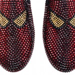 Christian Louboutin fue uno de los pioneros en ofrecerle calzado decorado con Swarovski Elements a ambos sexos y con el pasar de las temporadas fueron agregando studs y otros detalles extra; sus pumps y sneakers se han robado más de un corazón y han quitado infinidad de alientos a aquellos que tienen el privilegio de observarlos cara a cara. El detalle es que estos calzados son súmamente costosos, marcas como Miu Miu, Prada y Louboutin los ofrece en un rango de precio entre 1.500 y 6.000 dólares americanos, la buena noticia es que marcas como ALDO, ZARA, Steve Madden y H&M han lanzados al mercado diseños parecidos (cero knockoffs) a precios mucho más accesibles: entre 90 y 200 dólares americanos.